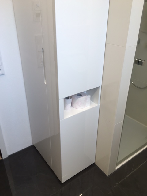 beidseitig zu öffnender Hochschrank Gäste-WC, hochglanz